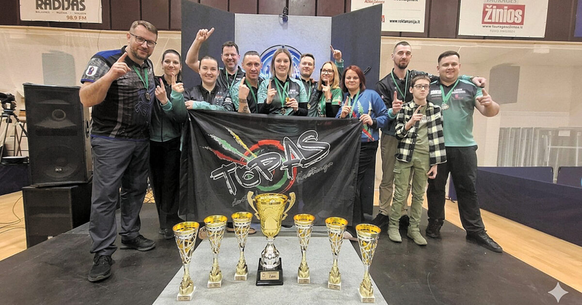 Kretingos smiginio klubo „Topas“, kuriam vadovauja Romualdas Jablonskis, komanda penktą kartą tapo Lietuvos darts (smiginio) sporto federacijos taurės nugalėtoja.